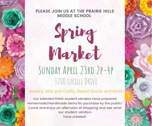 The Spring Market will take place at Prairie Hills Middle School at 3200 Lucille Drive on April 23, from 2 p.m. to 4 p.m.
