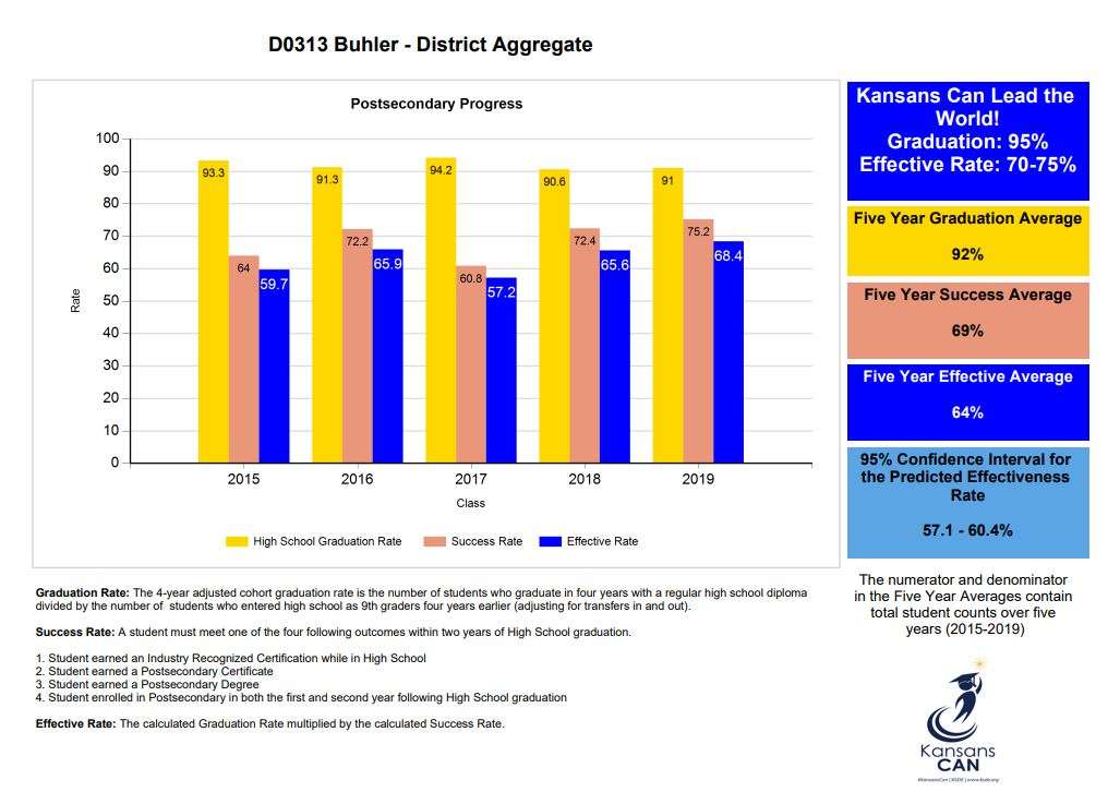 HUTCHINSON, Kan. — Buhler USD 313 received its numbers for postsecondary progress and USD 313 Superintendent Cindy Couchman is pleased.