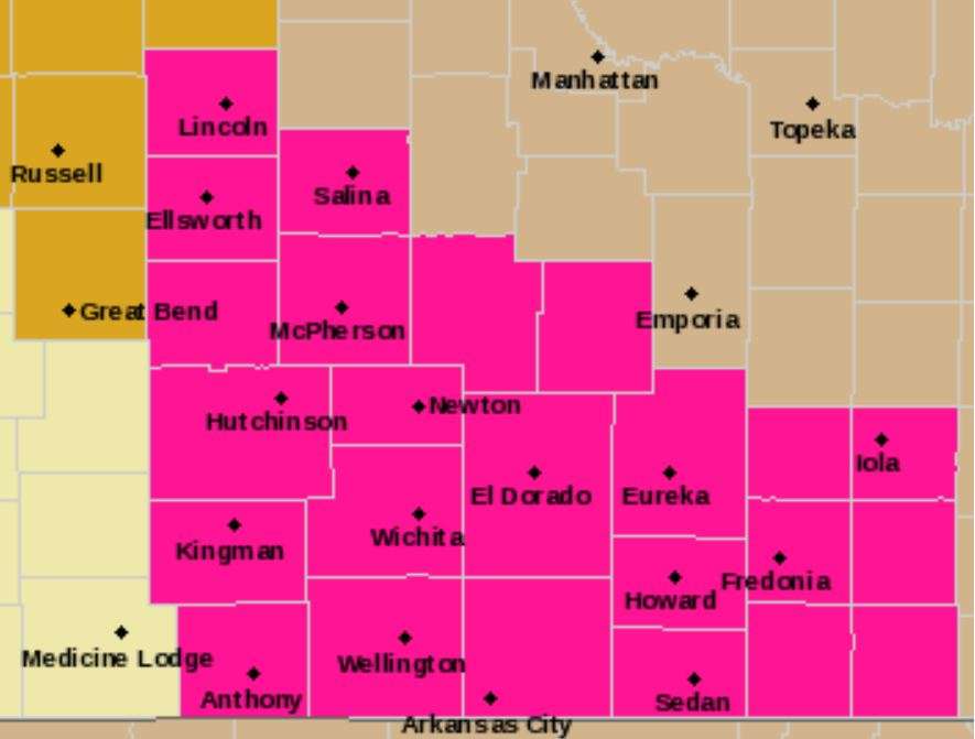 The National Weather Service office in Wichita has issued a Red Flag Warning. The warning is in effect from noon today to 5 p.m. this afternoon for extreme grassland fire danger.