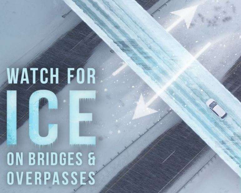 Plan on slippery road conditions, especially on bridges and overpasses.