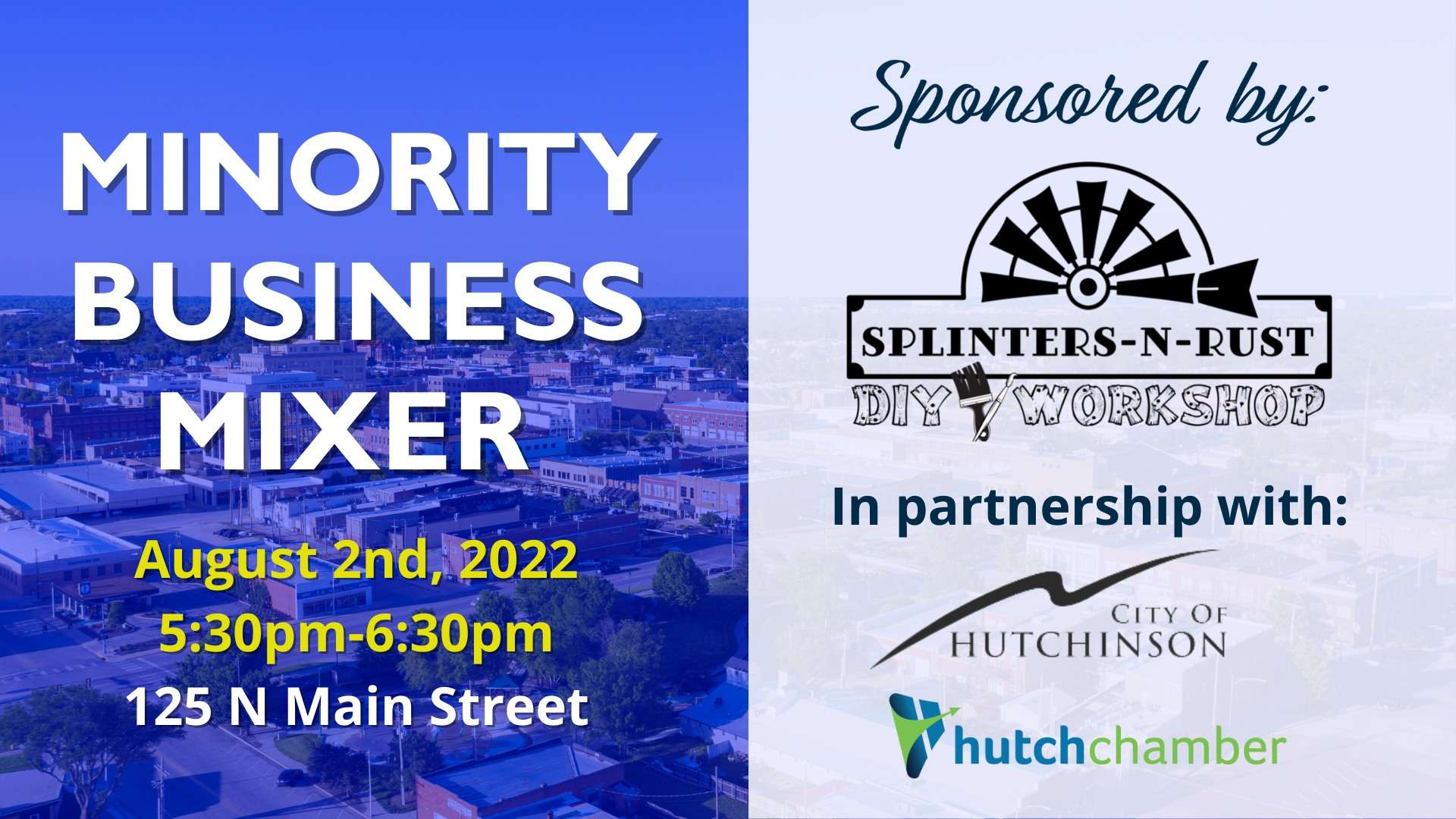 HUTCHINSON, Kan. — The next Minority Business Mixer is Tuesday from 5:30 p.m. to 6:30 p.m. at Splinters N Rust at 125 North Main in Hutchinson.