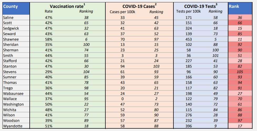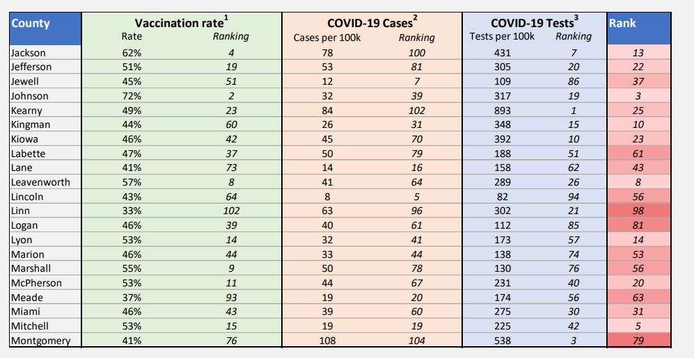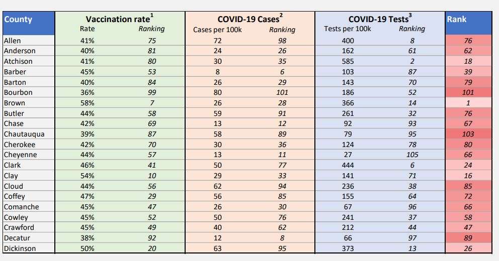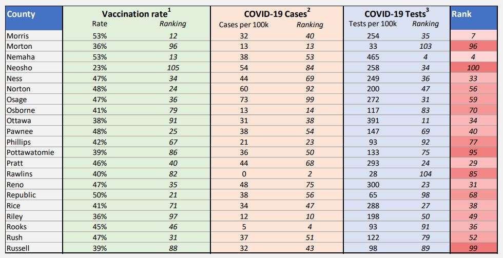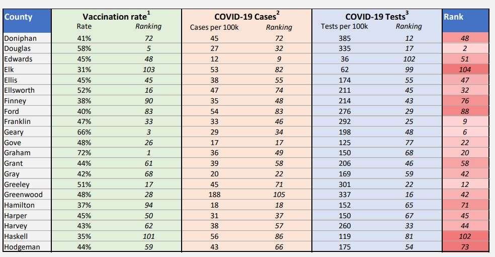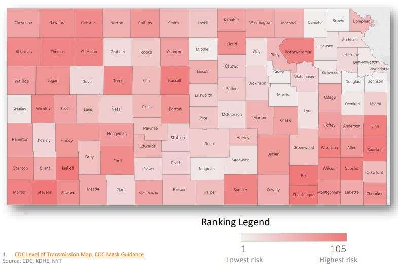 The Kansas Department of Health and Environment (KDHE) announced Wednesday the release of the Kansas COVID County Ranking report.