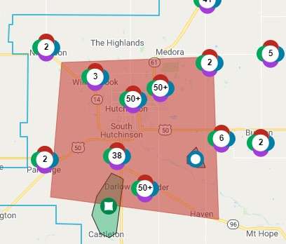 One of the major outages involves a large section in the central parts of Hutchinson in an area from 14th Avenue south to 2nd Avenue and from Monroe east to Severance