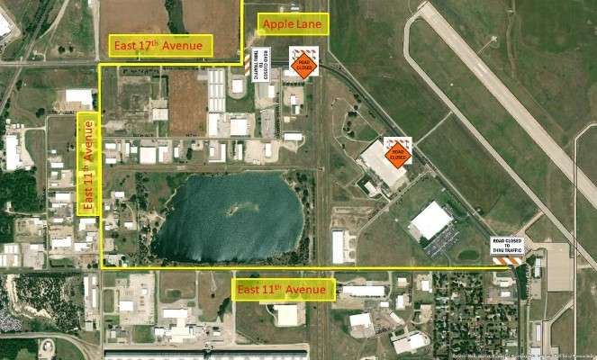 - Eastbound traffic on 17th and northbound traffic on Airport Road will need to use 11th Avenue and Halstead Street to bypass the closed section of street.