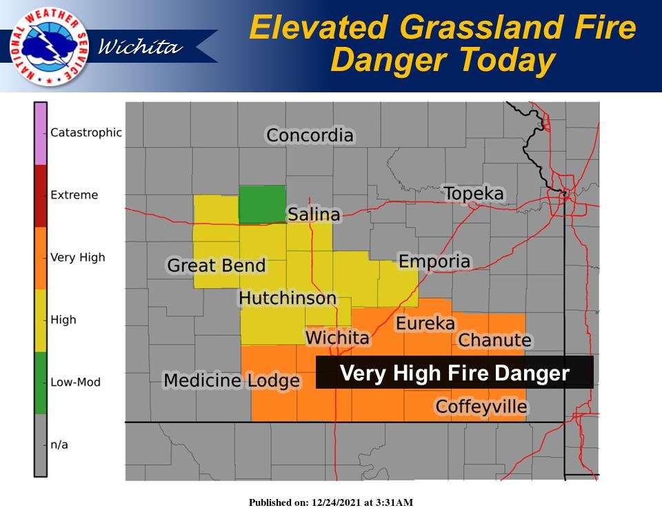 WICHITA — According to the Wichita office of the National Weather Service, an elevated grassland fire danger will exist across southern Kansas for this afternoon.