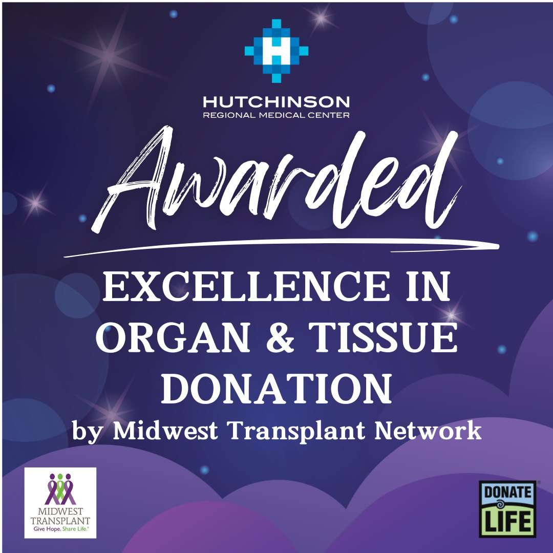 HUTCHINSON, Kan. — Hutchinson Regional Medical Center announced earlier this week that the hospital has been honored with the Excellence in Organ & Tissue Donation Award by Midwest Transplant Network. Out of 242 hospital partners, only seven achieved this recognition.