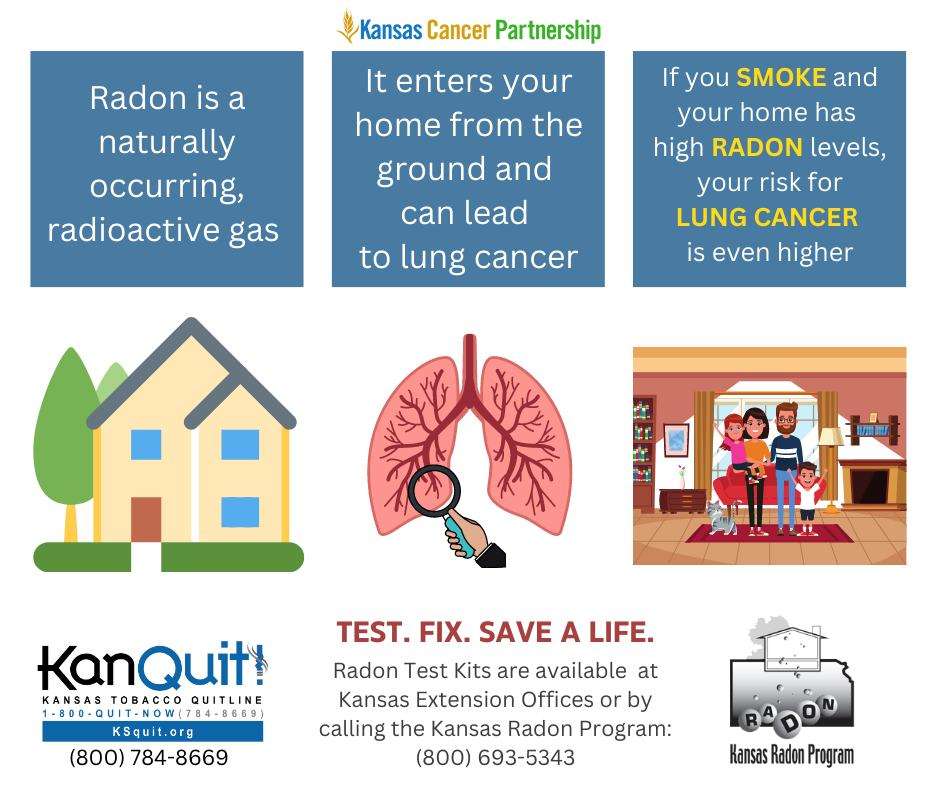 Did you know that people who smoke are up to 9 times more likely to develop radon-induced lung cancer than people who have never smoked? Free resources are available for anyone who wants to quit using tobacco products. Visit https://kansas.quitlogix.org/en-US/