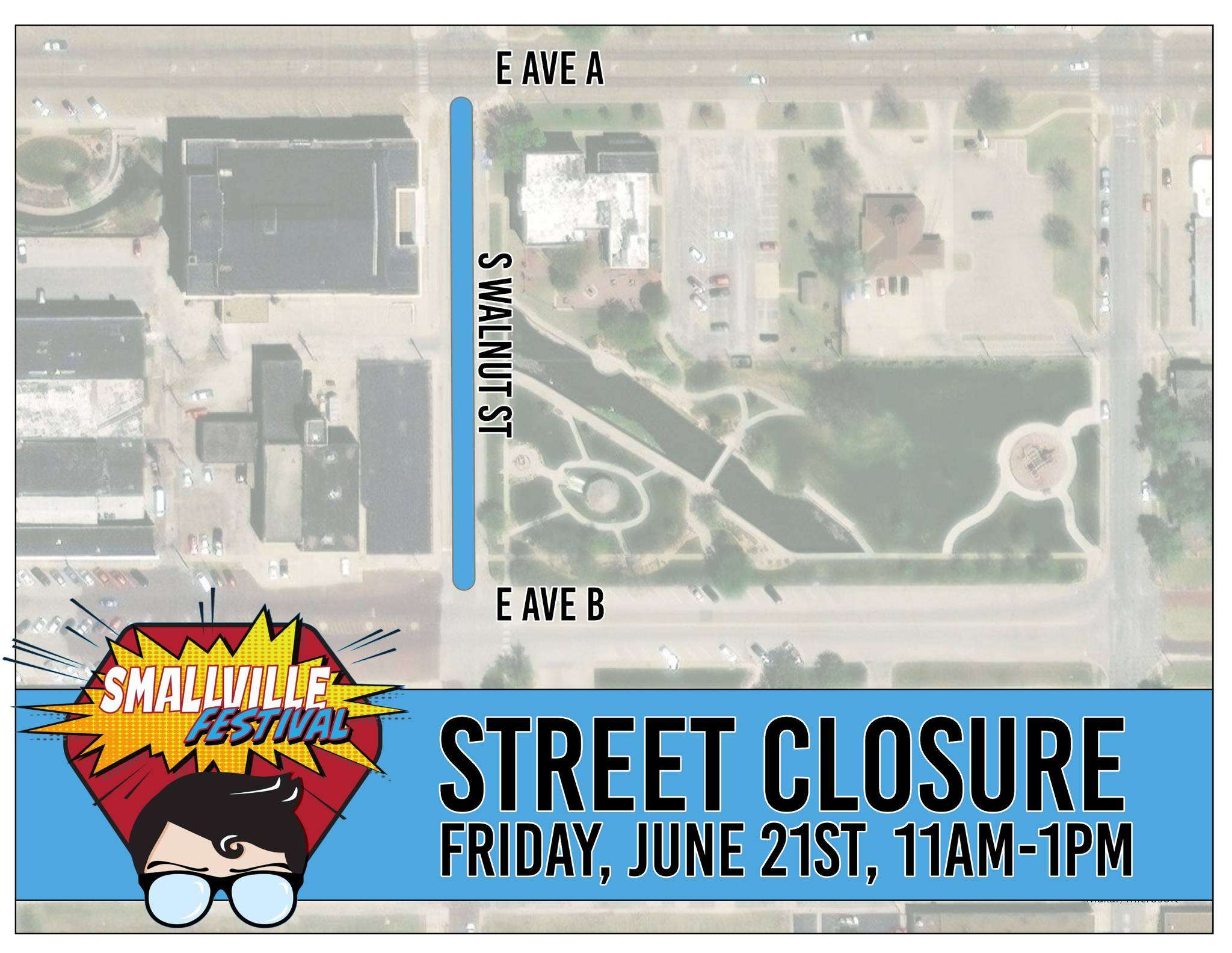 HUTCHINSON, Kan — As we celebrate Smallville Festival, please be aware of the following street closures affecting downtown this week:
