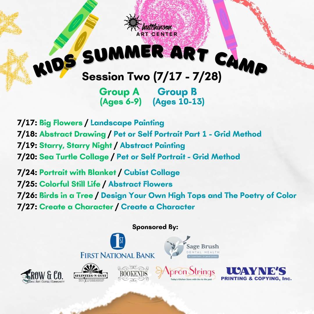 HUTCHINSON, Kan. — Session Two of the Hutchinson Art Center Kids Summer Art Camp starts on Monday, July 17th.