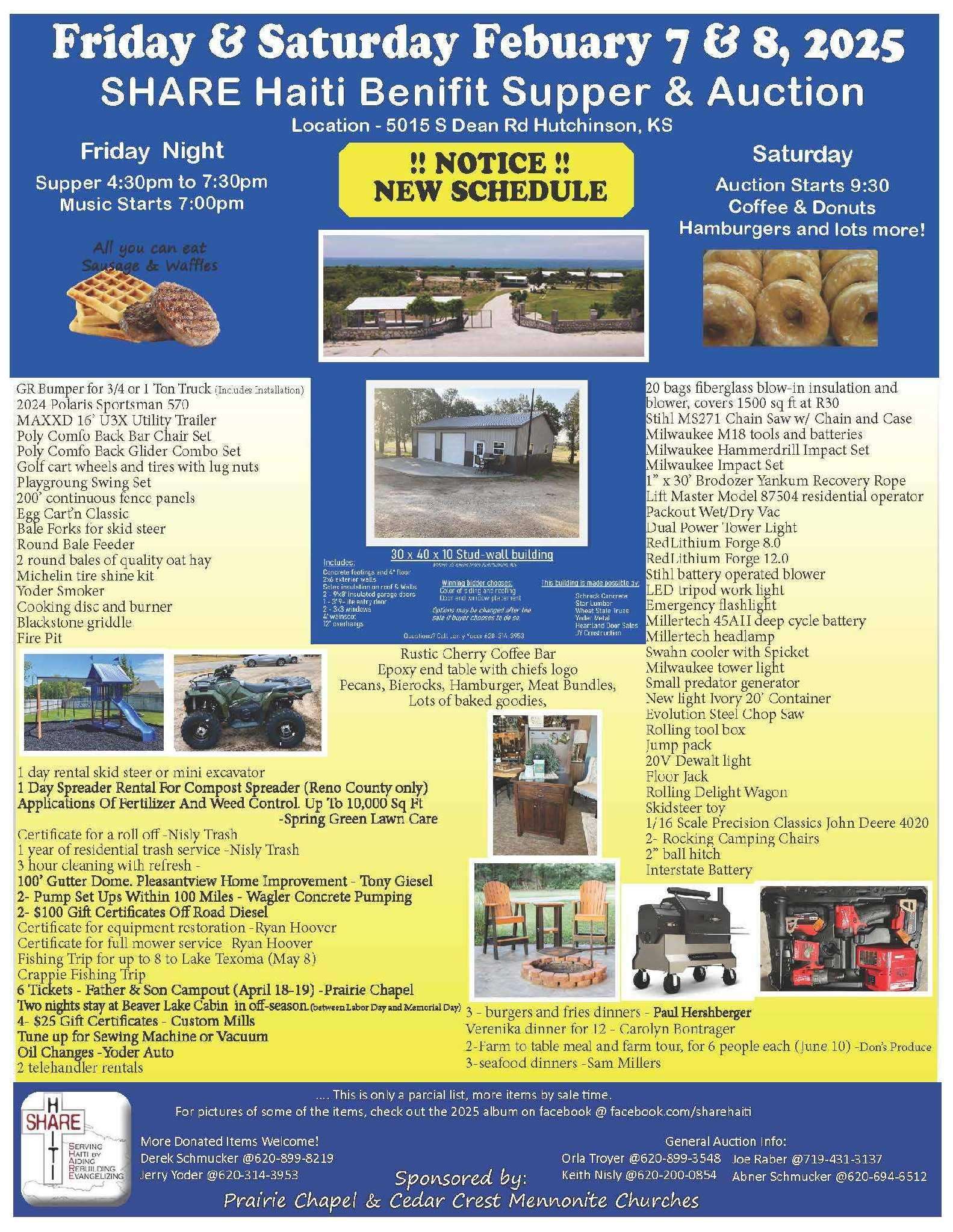 Friday night is all-you-can-eat waffle and sausage dinner. Then, on Saturday is the benefit auction.