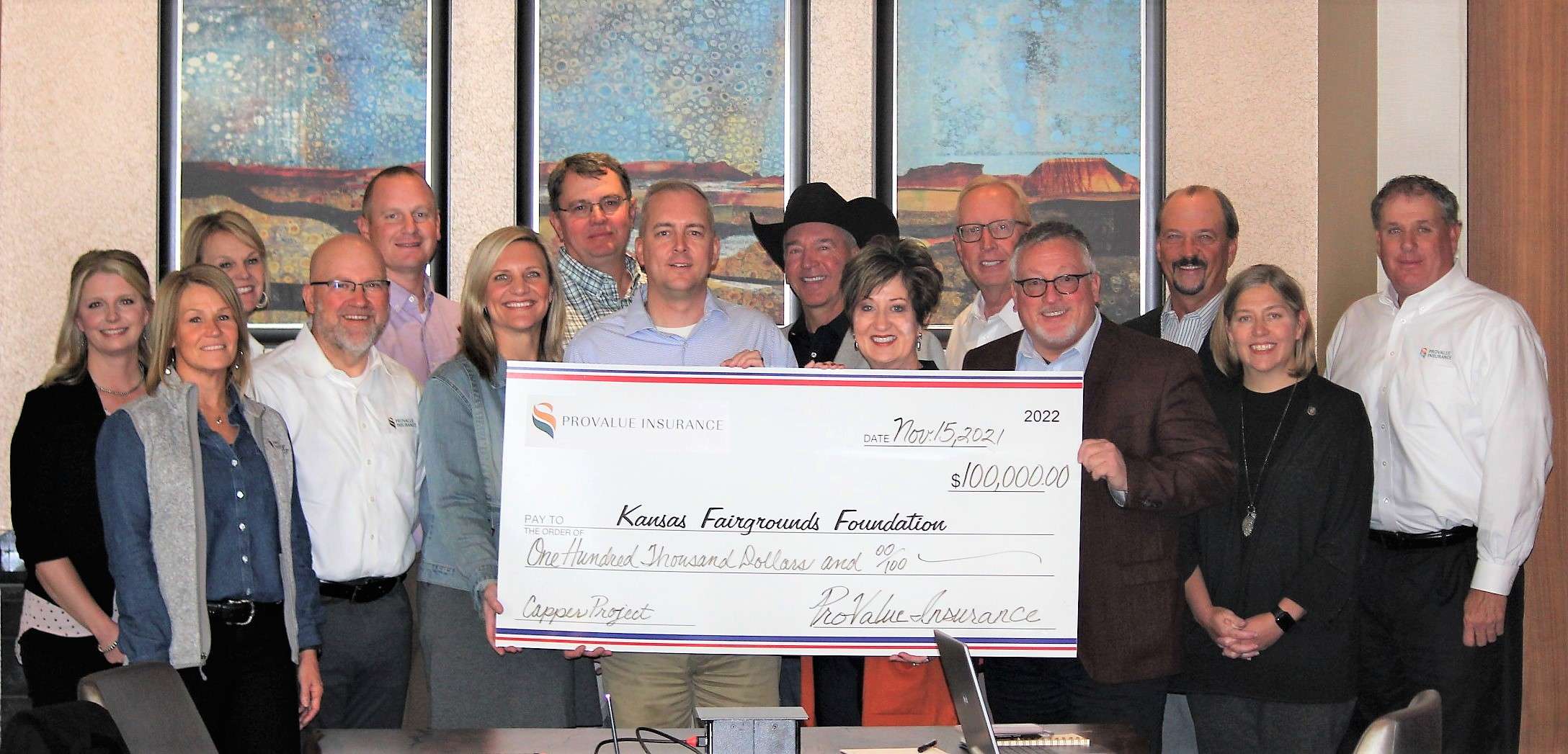 HUTCHINSON, Kan. — The Kansas State Fair received a check for $100,000 for renovation work to the House of Capper on the fairgrounds.