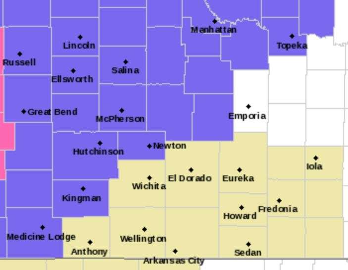 Mixed precipitation will be changing to snow. Total snow accumulations of 1 to 4 inches are possible over portions of central and south central Kansas.