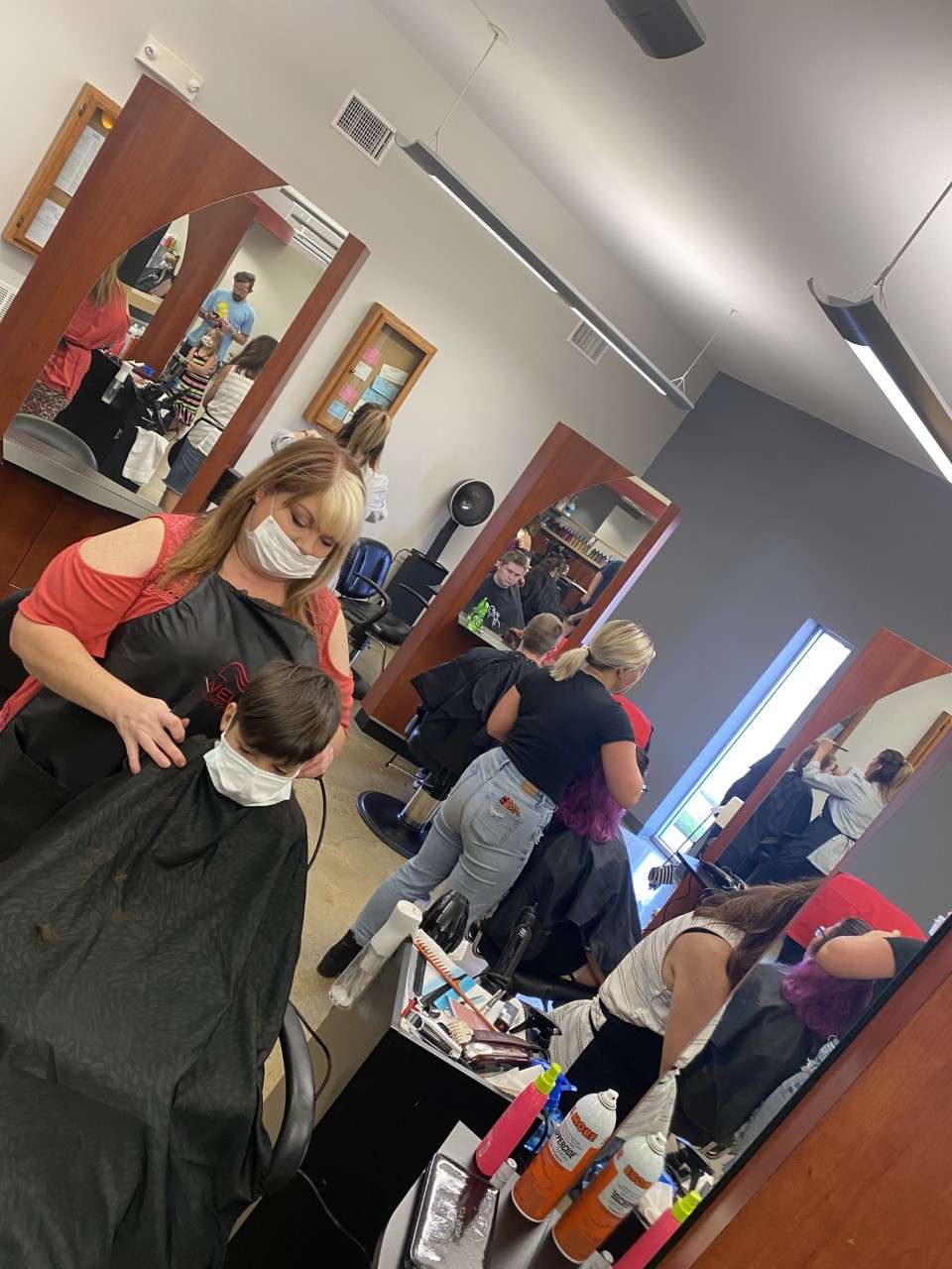 Students were lined up outside the door waiting for their turn as the school performed more than 250 free haircuts.