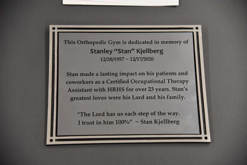 HUTCHINSON, Kan. — Hutchinson Regional Medical Center honored Stanley (Stan) Kjellberg on Wednesday, dedicating in his memory the Outpatient Occupational Therapy Unit. Stan, a long-time employee of the hospital, died of COVID one year ago this week.