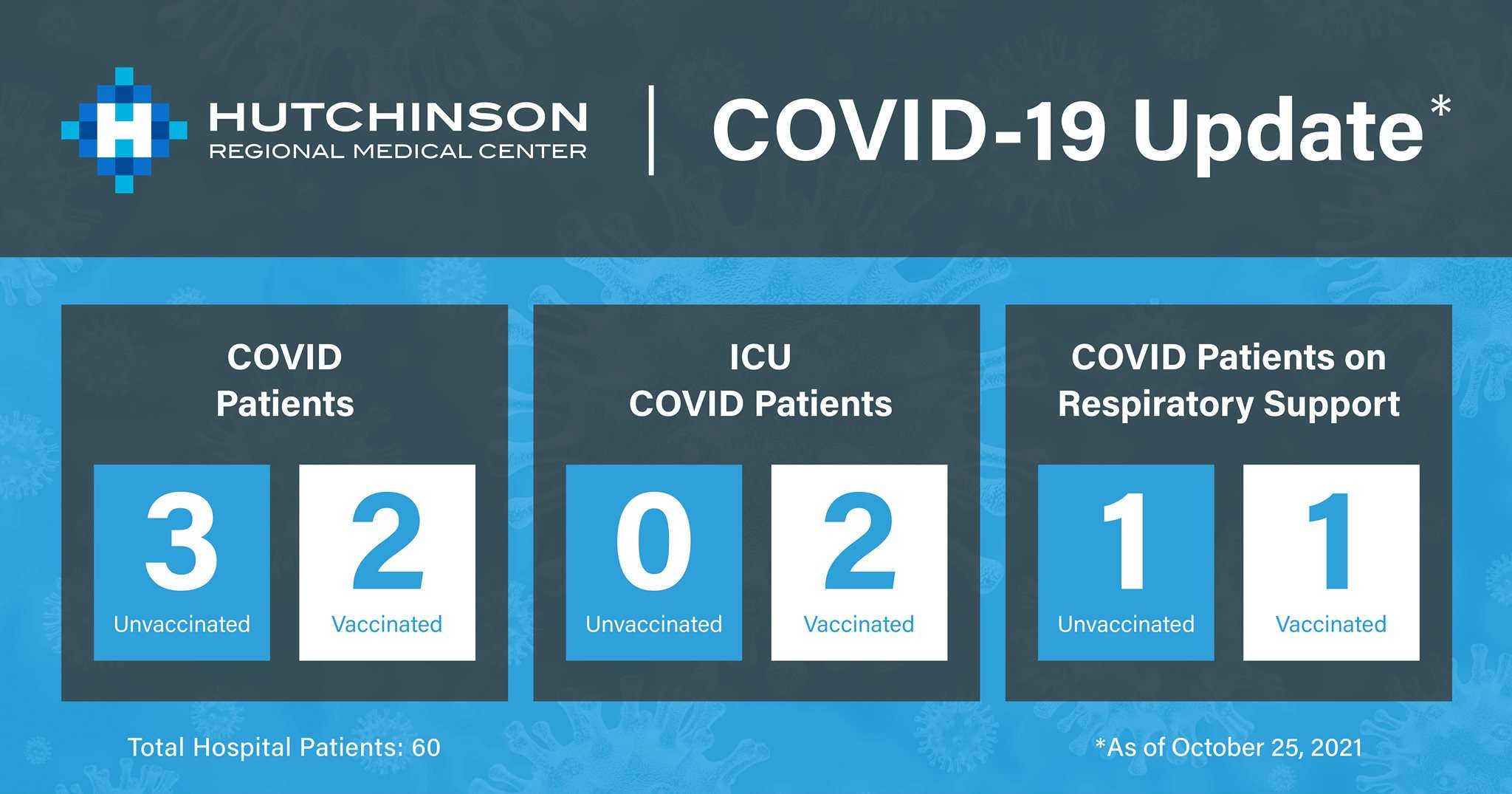 As of Monday, according to Hutchinson Regional Healthcare System, they only have three COVID patients. Two of those are vaccinated. There are two vaccinated patients in the ICU and one unvaccinated and one vaccinated person on respiratory support.
